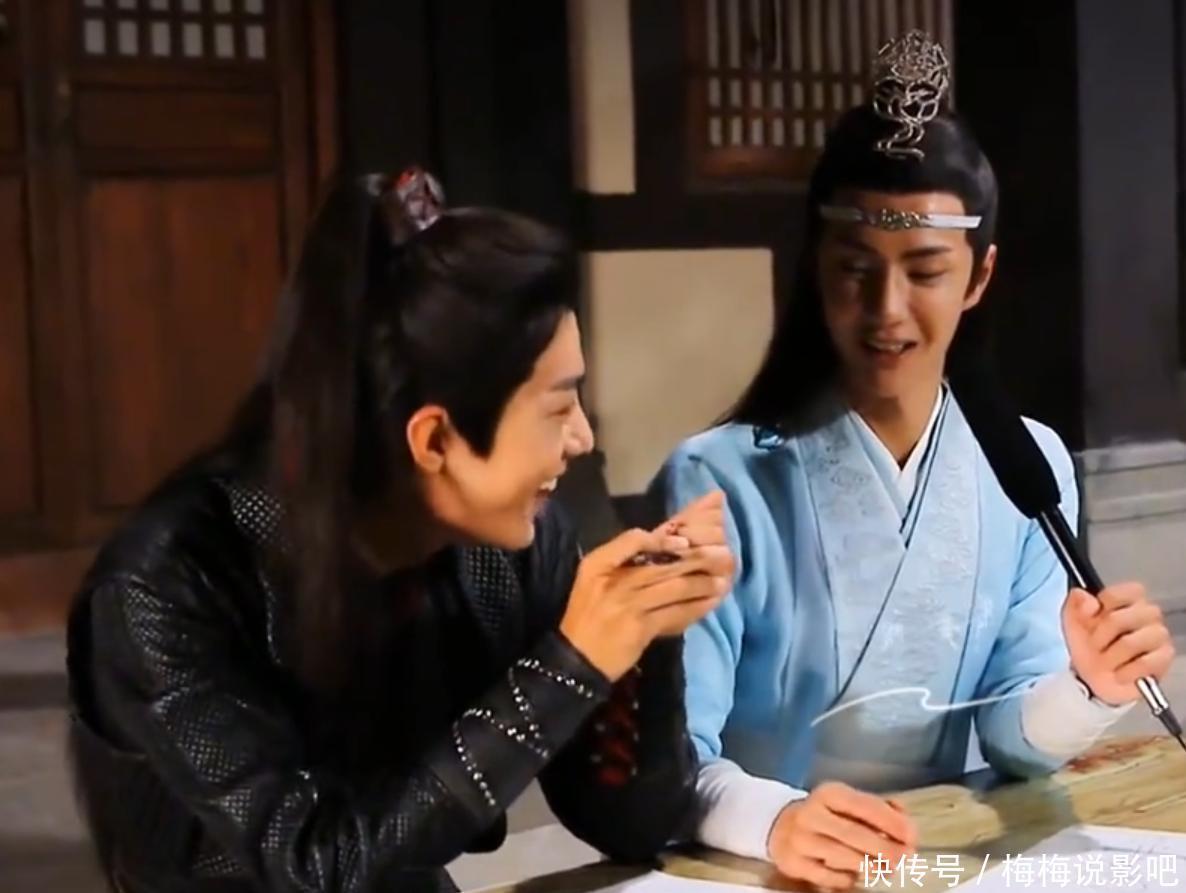 其他演员早些年在某剧组的片场,两位主演在玩看图猜成语的游戏,尽管对方画的很形象。