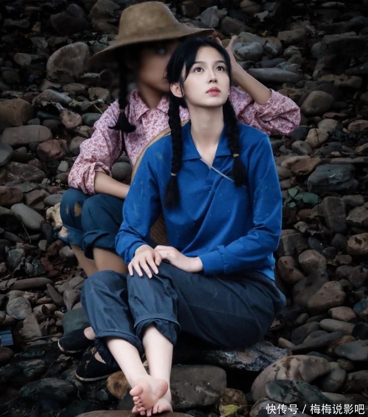眼睛亮亮的看起来像是素颜,手里还拿着锄头在农间劳动,这个妆造好有年代感。